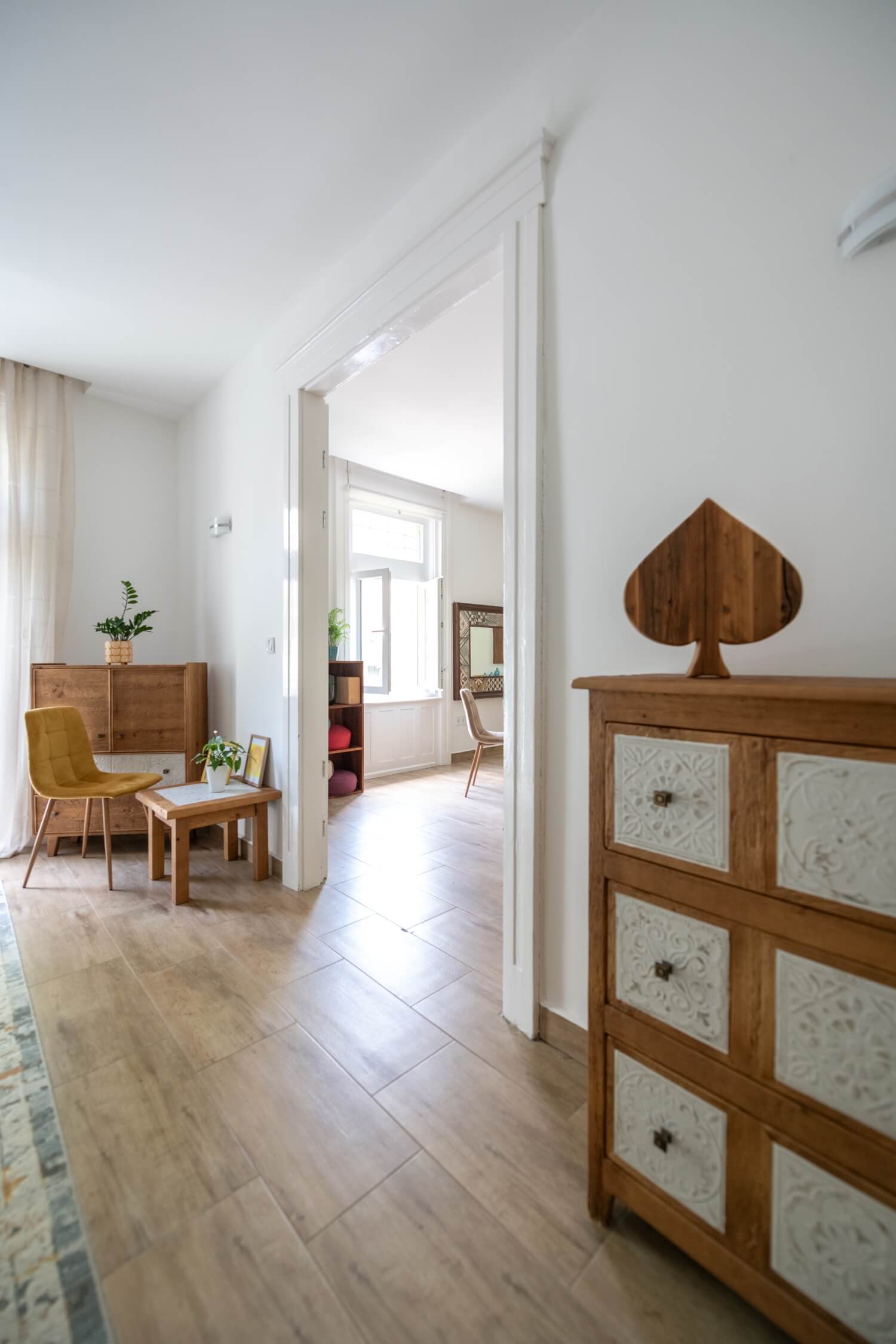 Friss, napfényes tér erkéllyel és könnyed eleganciával